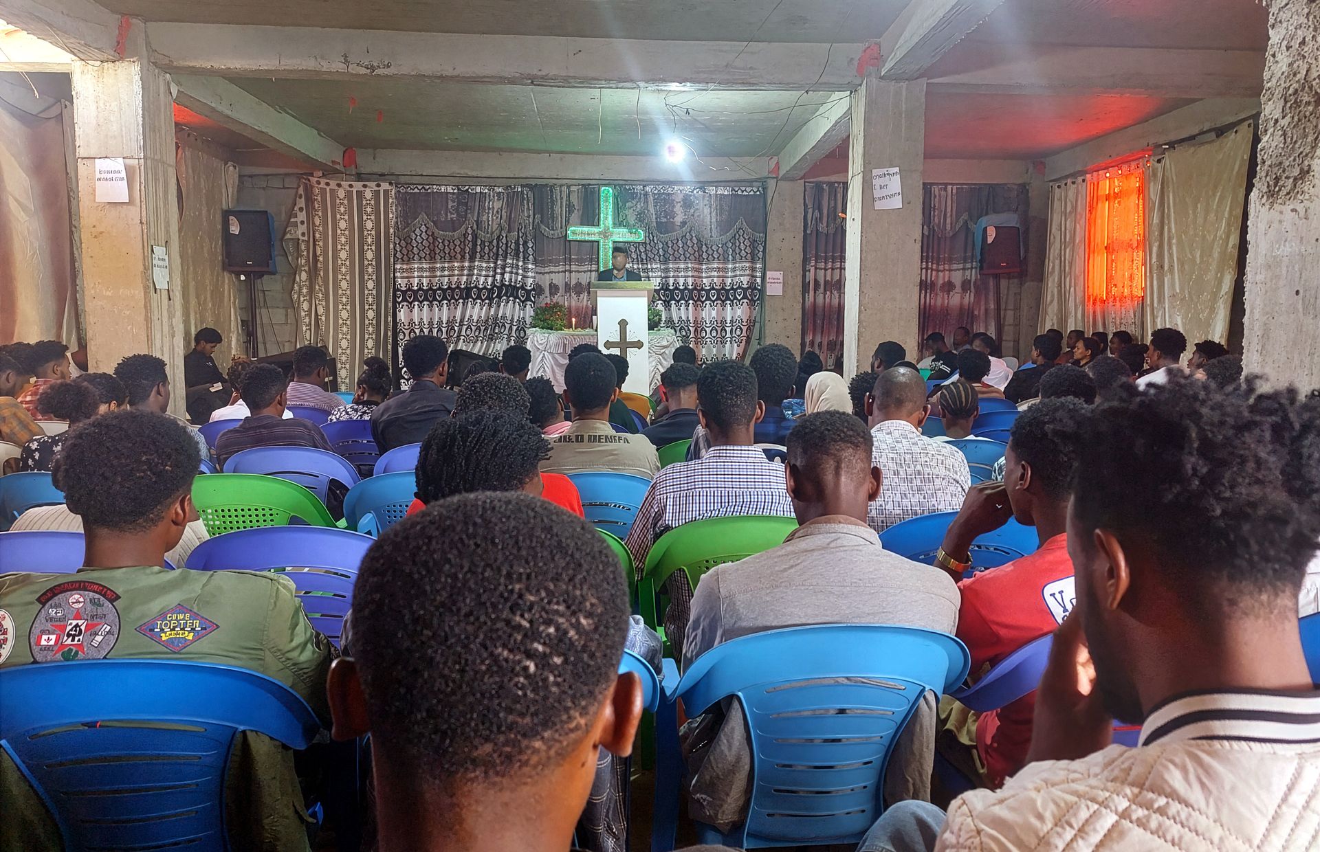"Silas" taler på gudstjeneste i en kirke i området der han bor og jobber.